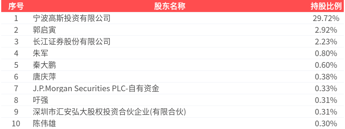 公司股东户数为2.74万户,前十大股东持股数量为1.61亿股,占总股本比例为37.89%,前十大股东持股情况如下:
