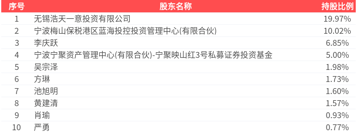 公司股东户数为1.05万户,前十大股东持股数量为1.23亿股,占总股本比例为50.43%,前十大股东持股情况如下: