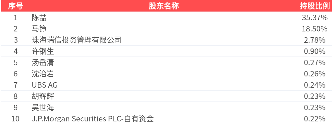 公司股东户数为2.97万户,前十大股东持股数量为1.94亿股,占总股本比例为58.99%,前十大股东持股情况如下: