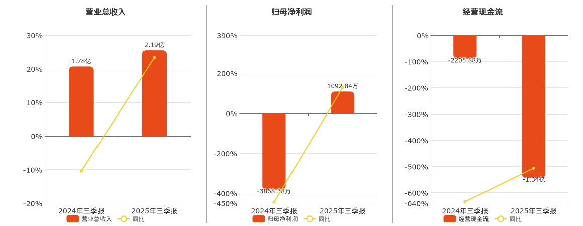 公司截至2025年9月30日,*ST兰黄营业总收入为2.19亿元,在已披露的同业公司中排名第10。截至2025年9月30日,*ST兰黄归母净利润为1092.84万元,在已披露的同业公司中排名第10。截至2025年9月30日,*ST兰黄经营活动现金净流入为-1.34亿元,在已披露的同业公司中排名第9,较去年同报告期经营活动现金净流入减少1.12亿元。