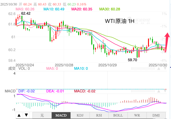 美国原油库存大幅下降,推动WTI原油价格上涨至每桶60.40美元。美国能源信息署(EIA)数据显示,美国原油库存减少近690万桶,提振了市场对需求的乐观情绪。