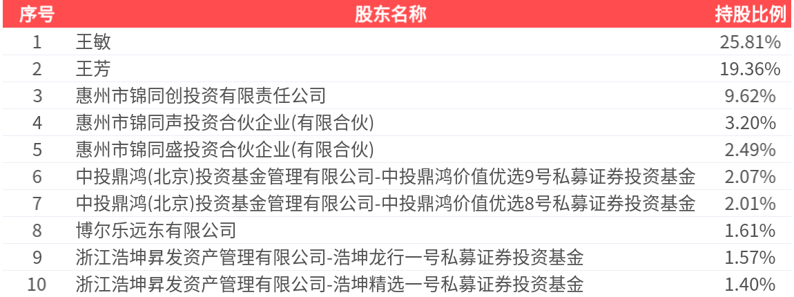 公司股东户数为3621户,前十大股东持股数量为6809.37万股,占总股本比例为69.16%,前十大股东持股情况如下: