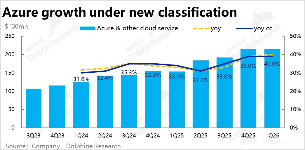 1、Azure没有意外之喜:最受关注的Azure业务,本季营收同比增长40%,剔除汇率影响增速则为39%,不变口径下和上季增速一致。