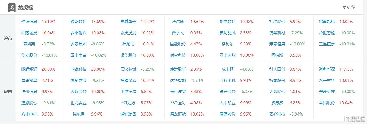 在龙虎榜中,涉及沪股通专用席位的个股有8只,国盾量子的沪股通专用席位净买入额最大,净买入4.06亿元。