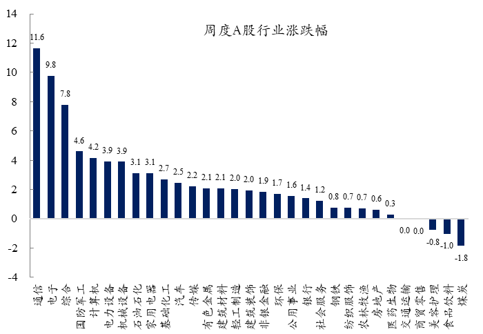 如果是乐观的情绪催生了结构的行情,就可以解释红利和长债这些相对安全资产的掉队。问题是,宏观配置和交易无论如何都没法绕开经济总量这一基本的指标。基于对经济总量的考虑,很多人在想这些掉队的资产会不会在四季度卷土重来呢?从A股行业周度涨跌幅来看,煤炭、食品饮料等经过前期的反弹后锐气渐失,似乎也没有看到很多谨慎的投资者预期的大小切换的现象出现。