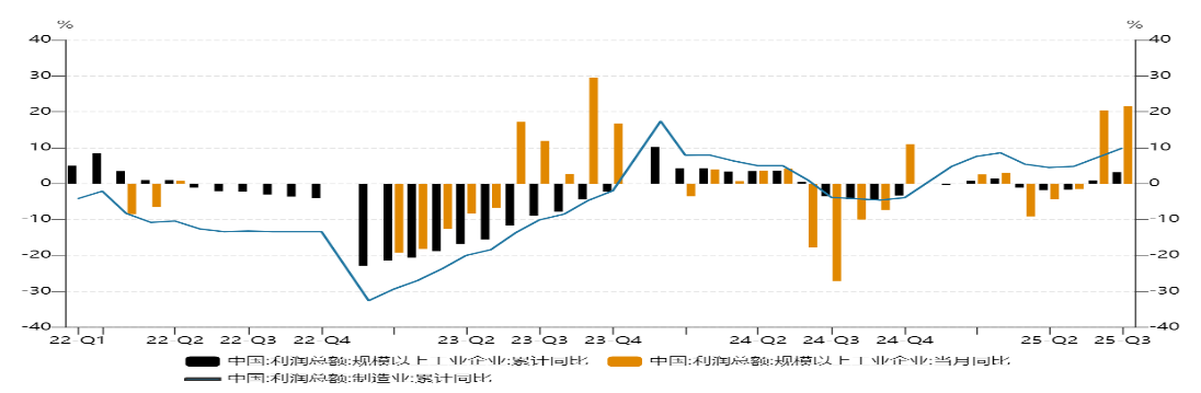 在转型的时代,创造性破坏是基本的特征,结构性的指标彰显出不同的宏观背景。2025年9 月,规模以上工业企业利润增速回升至 21.6%,成为特别亮眼的点。