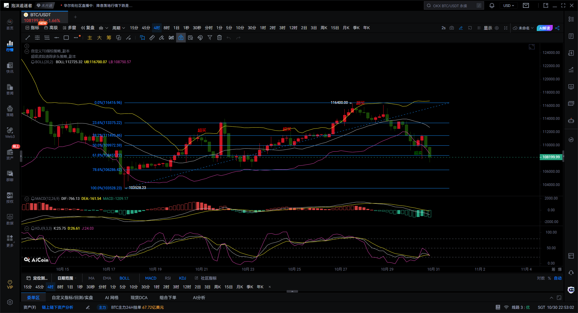 中线建议:有效企稳111500并伴随MACD形成金叉信号,可以确认阶段底部成立,目标113000-115000。如果持续在下轨震荡,需要警惕二次探底可能。
