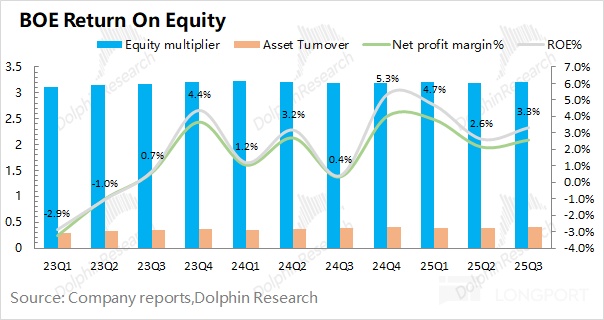 从主营业务的经营角度看,京东方本季度真实毛利率(考虑资产减值影响,按原会计口径)为 13%,同比仍然下滑 1.6pct。而将此毛利率(13.1%)与公司的经营费用率(11.4%)结合起来,可以发现当前公司的主营业务实际上仍然是略高于盈亏平衡线(+1.7%)。