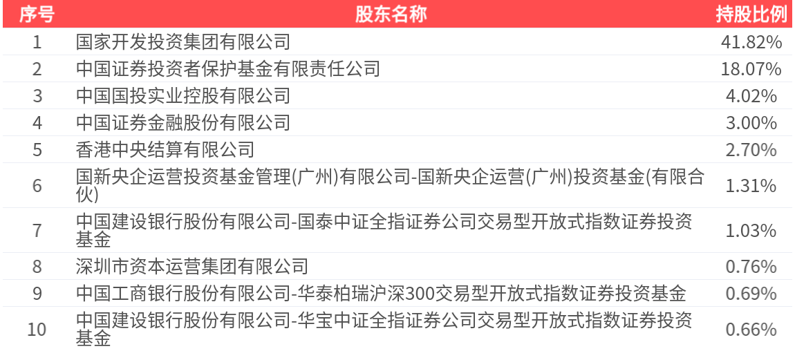公司股东户数为8.57万户,前十大股东持股数量为47.36亿股,占总股本比例为74.06%,前十大股东持股情况如下: