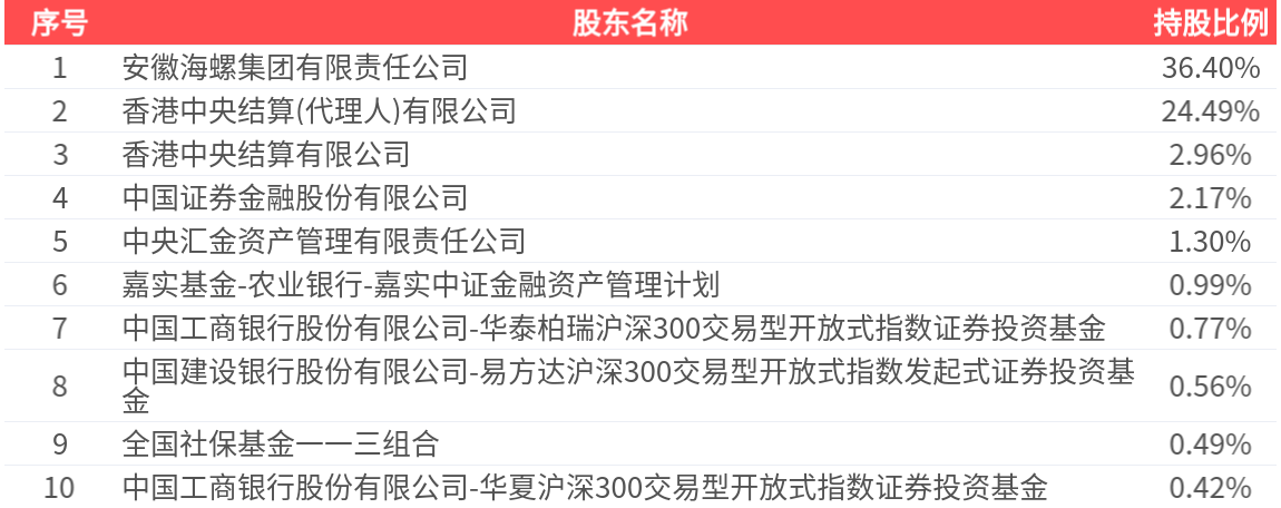 公司股东户数为25.14万户,前十大股东持股数量为37.38亿股,占总股本比例为70.54%,前十大股东持股情况如下: