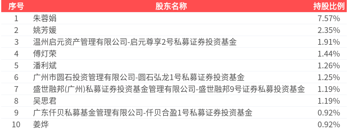 公司股东户数为1.91万户,前十大股东持股数量为1.05亿股,占总股本比例为20.00%,前十大股东持股情况如下: