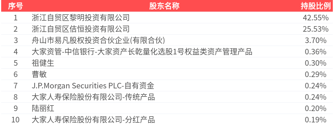 公司股东户数为1.34万户,前十大股东持股数量为1.08亿股,占总股本比例为73.59%,前十大股东持股情况如下: