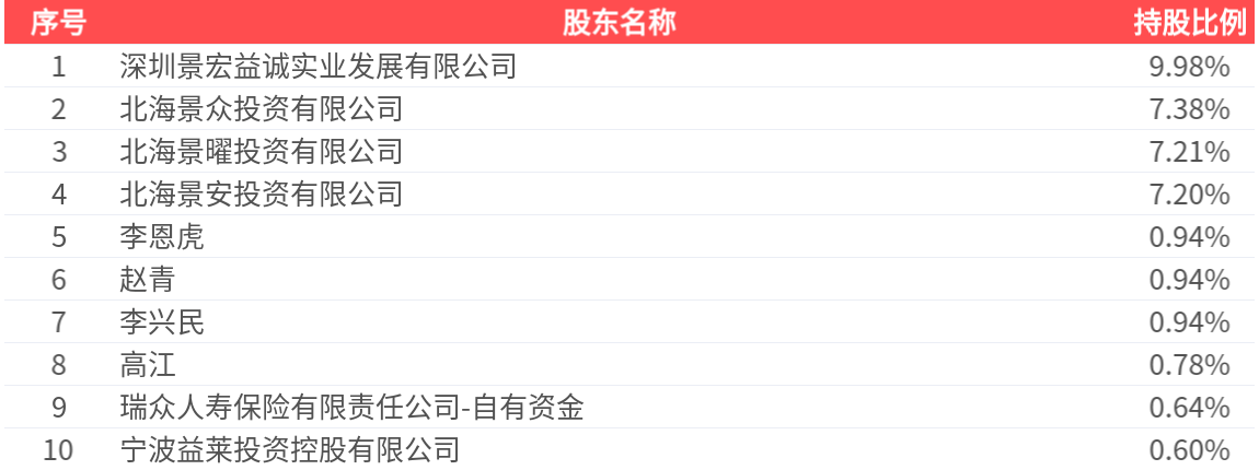 公司股东户数为4.24万户,前十大股东持股数量为2.58亿股,占总股本比例为36.63%,前十大股东持股情况如下: