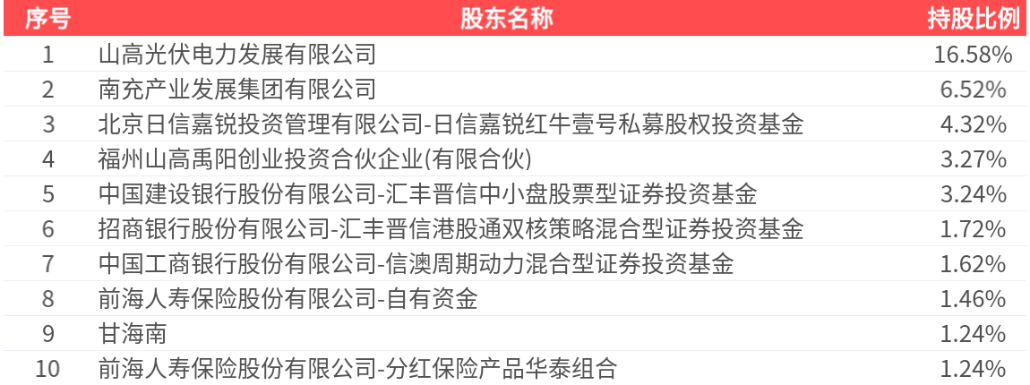 公司股东户数为1.73万户,前十大股东持股数量为1.92亿股,占总股本比例为41.22%,前十大股东持股情况如下: