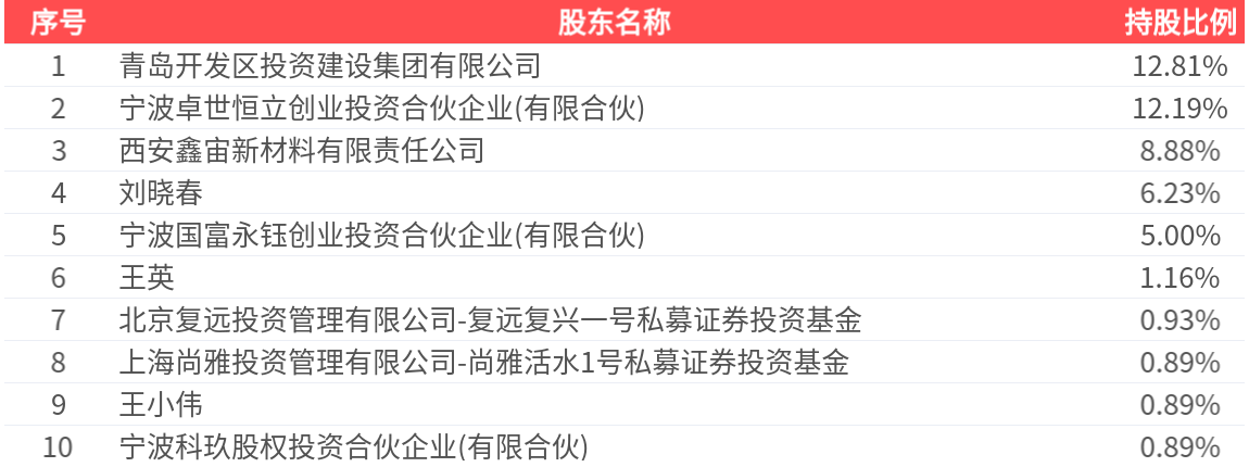 公司股东户数为1.06万户,前十大股东持股数量为8655.09万股,占总股本比例为49.86%,前十大股东持股情况如下: