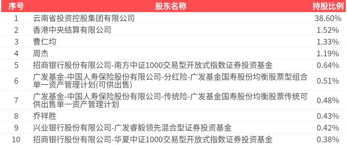 公司股东户数为5.57万户,前十大股东持股数量为3.46亿股,占总股本比例为45.50%,前十大股东持股情况如下: