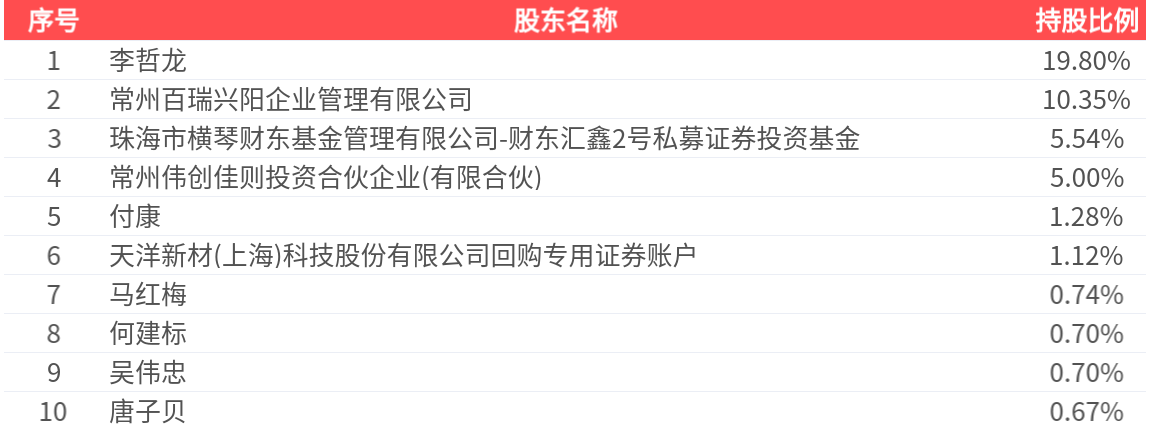 公司股东户数为1.66万户,前十大股东持股数量为1.99亿股,占总股本比例为45.90%,前十大股东持股情况如下:
