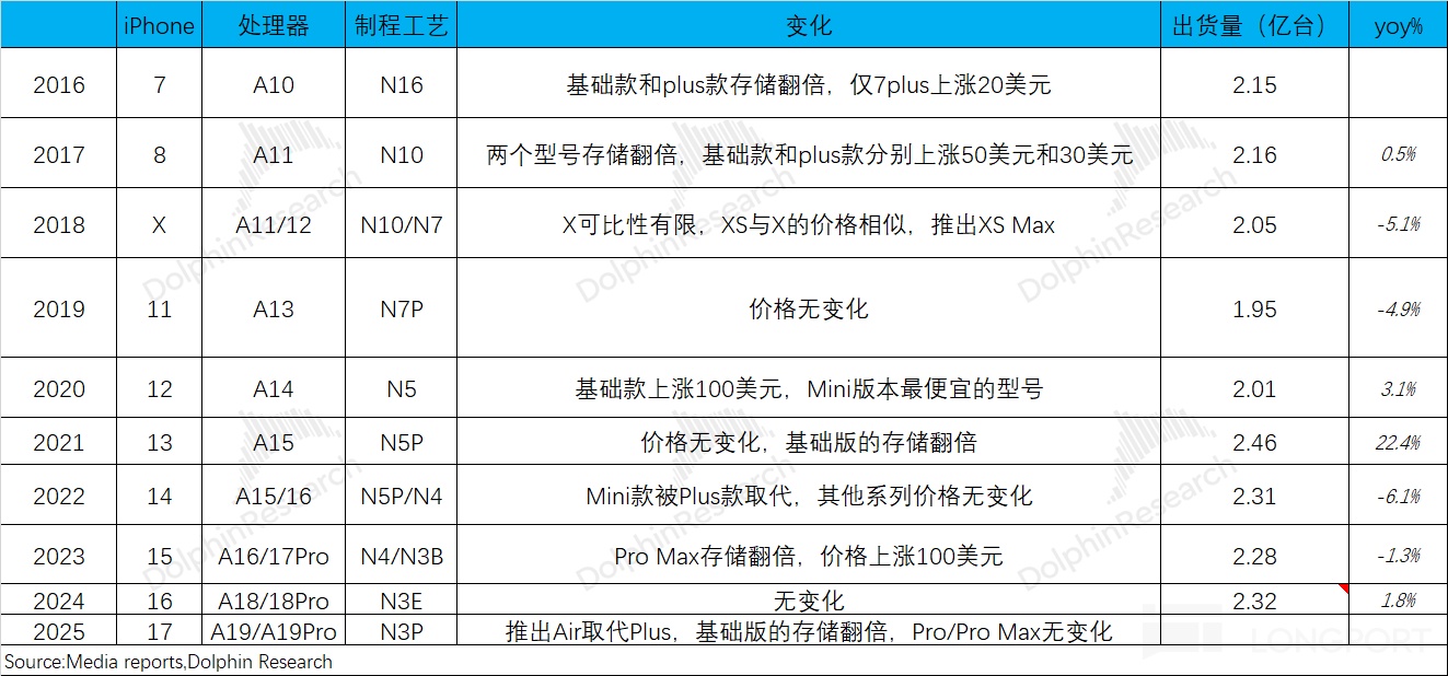 b)秋季新品发布会:iPhone17 系列新品发布,主要的变化是 “推出 Air 取代 Plus,基础版的存储翻倍”。苹果公司依然维持着 “小修小改” 的操作,并没有带来 AI 方向的 “亮点”。