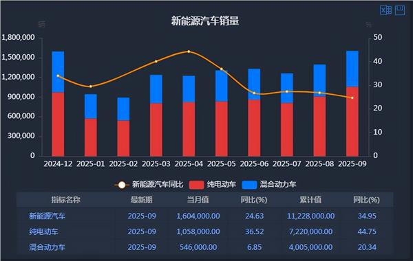 10月25日,乘联分会秘书长崔东树发文表示,2025年9月月末全国乘用车行业库存328万辆,较上月增12万辆,较2024年9月增26万辆,形成库存回升的旺季备货特征。2025年4月行业库存350万辆创出近两年新高,以旧换新推动的车市零售较高,但厂家生产相对谨慎,5-8月的车企相对更理性控制生产,减少对经销商的库存压力,形成5-8月持续去库存,2025年9月的库存回升。其中厂家库存占比24.6%,较上月提升0.7个百分点。乘联分会预测团队预测未来几个月厂家总销量超强,2025年9月底的库存与未来销量综合预估的现有库存支撑未来销售天数在39天,相对于2023年9月的50天、2024年9月的45天,今年9月的总体库存压力明显下降。