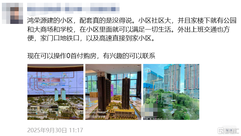再比如位于龙华观澜的鸿荣源观城,同样出现“操作0首付”的推广宣传。