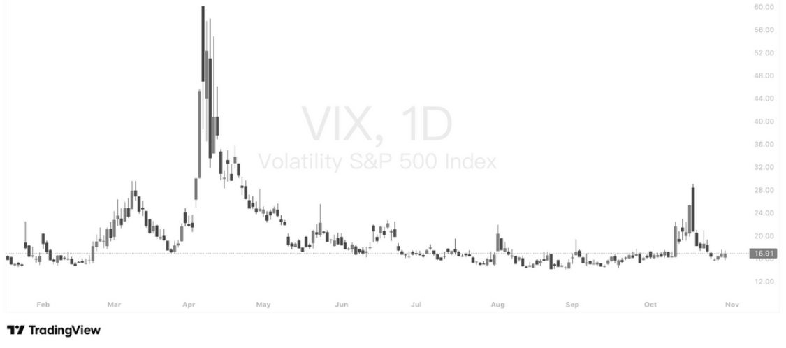 从结构上看,VIX在17附近形成短期支撑,若能持续维持于16–18区间,意味着市场对宏观与财报风险的定价趋于理性。然而,考虑到AI资本开支与利率政策仍具不确定性,低波动并不等于风险消失,一旦市场预期再度被打破,VIX仍可能快速反弹。