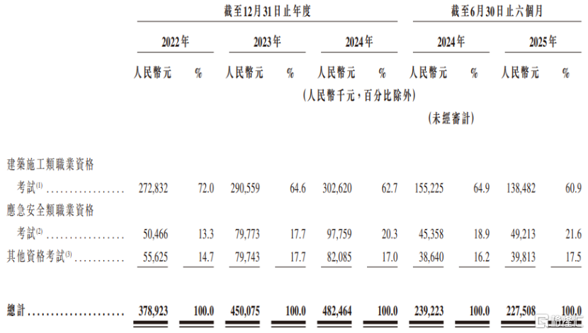应急安全类职业资格考试包括注册中级安全工程师资格考试、注册一级消防工程师资格考试,报告期内收入占比从13.3%提升至21.6%。