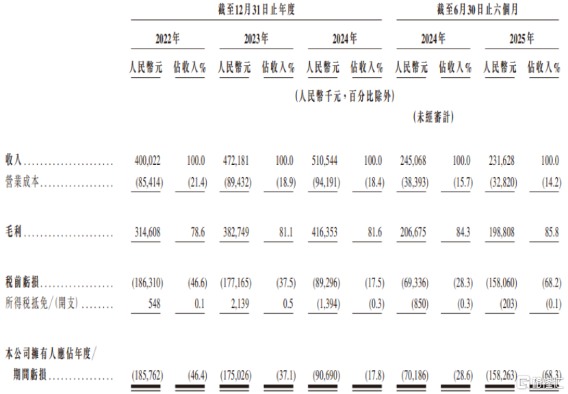具体来看,2022年、2023年、2024年和2025年1-6月,嗨学网的收入分别约4亿元、4.72亿元、5.11亿元、2.32亿元,毛利率分别为78.6%、81.1%、81.6%、85.8%,对应的净亏损分别约1.86亿元、1.75亿元、0.91亿元、1.58亿元,三年半累计亏损超6亿元,未来还可能持续亏损。