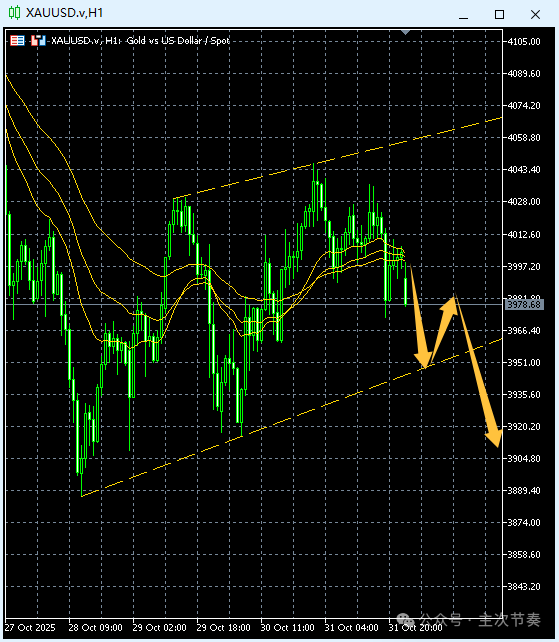 一句话看懂黄金Gold:尚未摆脱震荡,但反弹整体无力度,有助于短线空方发展。
