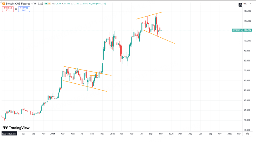 加密市场短时间内也倾向于会处于盘整的模式之中,不过周线级别上无论是BTC还是ETH都相对更孱弱一些,如果这种弱势得到进一步放大,则需要警惕贵金属和美股的风险。以比特币为参考的话,市场过去两周都处于大阴线的吞噬之中。不过只要103000的低点尚未跌破,那么就有机会形成一个高位的钻石形态,115000-118000的区间会是关键性的压力。