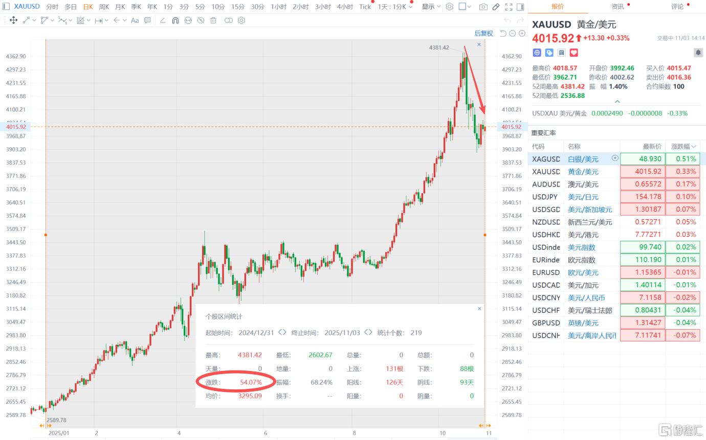 不过整体来看,今年以来黄金价格仍累计上涨逾50%。