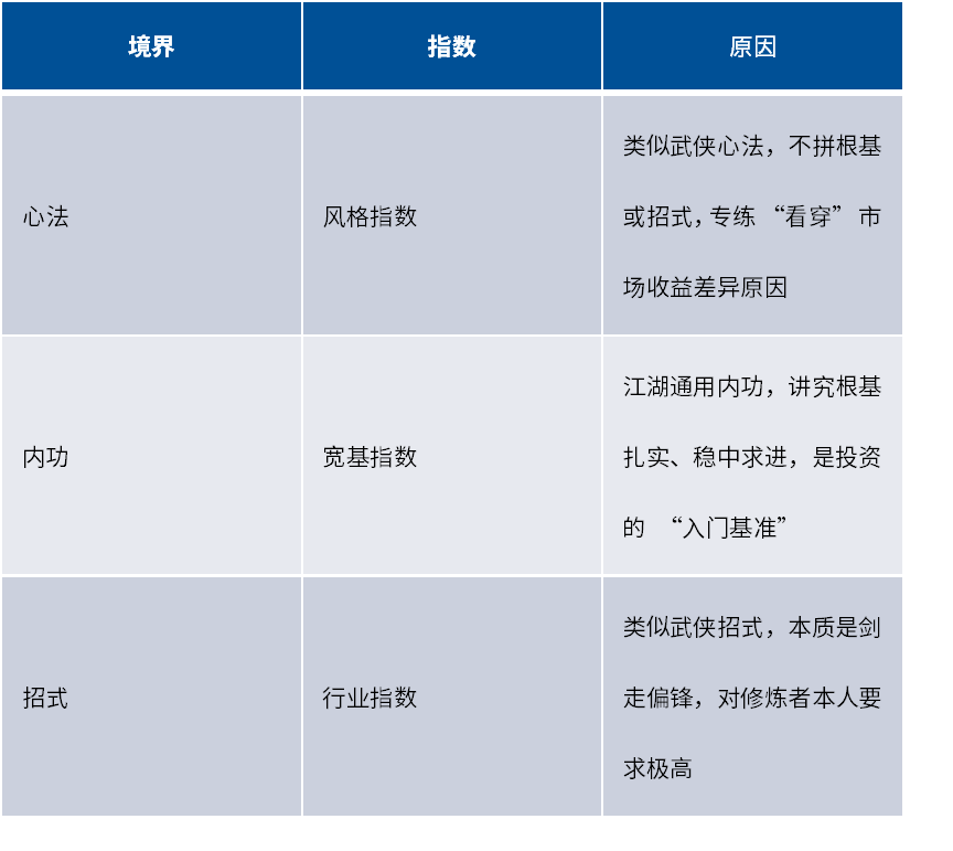 江湖传言:练武有三境——内功打底、招式破敌、心法通神。投资这江湖,亦然。如果说买宽基像练内功,买行业像练招式,那买风格指数(Smart Beta)便是修心法。