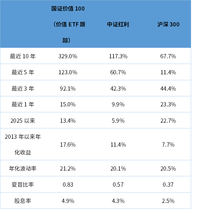 实力如何,数据说话:2013年至今,价值100指数年化收益17.6%。