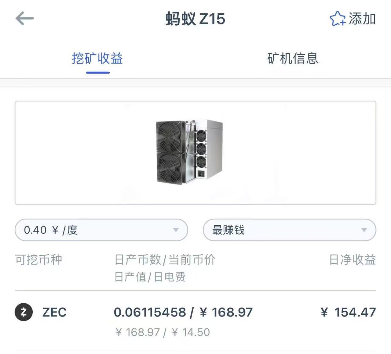 根据2025年11月3日ZEC最新行情,一台Z15 420K当下的产币量为0.05229个,日产值为168.9,日净收为154元,详情见下图