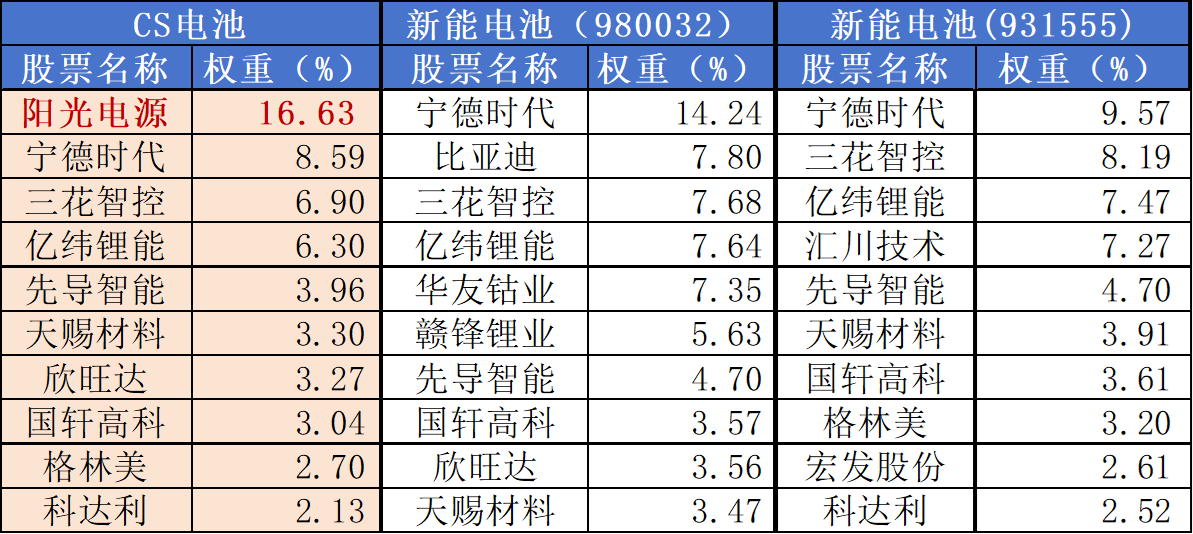 且对比前十大成分股来看,电池50ETF(159796)标的指数聚焦储能与动力电池两大黄金板块,其中第一权重股光伏逆变器龙头占比达16.63%,其余同类指数不含该成分股,此外还涵盖全球动力电池龙头、固态电池先行者等优势企业。