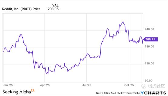Reddit Q3 财报改变了许多人的看法。有外国分析师认为,美国日活跃用户环比增 130 万,每用户平均收入显著提升,既缓解了市场对 AI 数据授权及本土用户饱和的担忧,也推动股价年内涨约 25%。尽管估值高于同行,但其长期增长潜力值得关注。