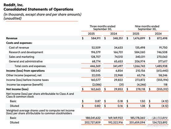 接下来,我们详细分析Reddit最新的季度业绩。以下是Q3财报摘要: