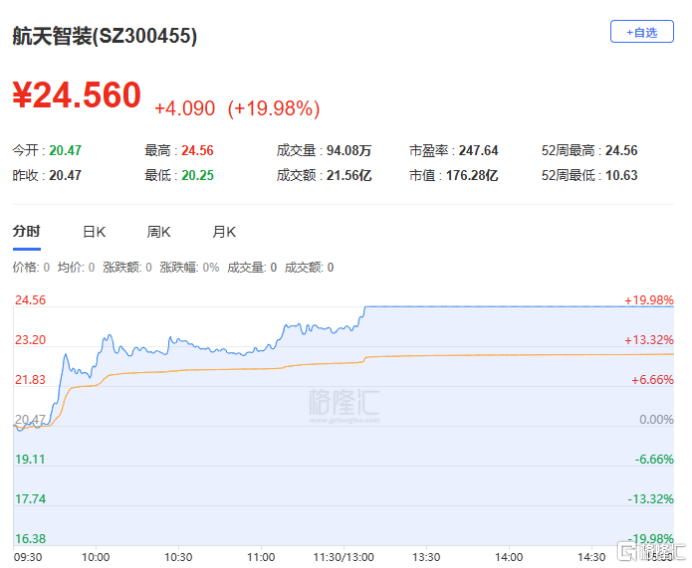 航天智装:今日涨停,全天换手率13.28%,成交额21.56亿元。机构净买入6942.41万元,深股通净买入9344.10万元,营业部席位合计净买入1.65亿元。