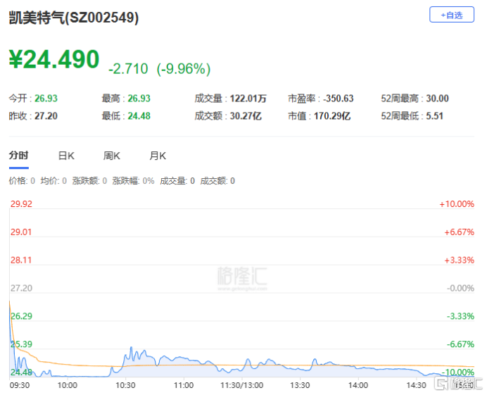 凯美特气(板块下跌+前期涨幅较大+资金流出+三季报下滑)