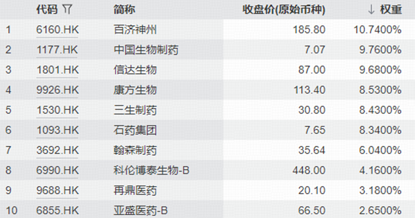 图:截至10月底,恒生港股通创新药精选指数前十大成份股权重合计71.51%