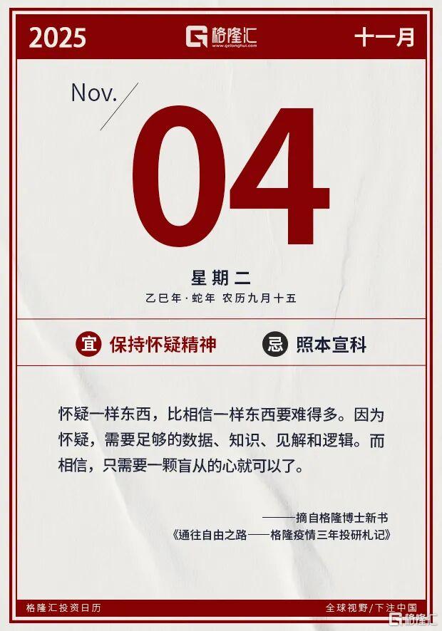 全球资产表现上,现货黄金大致持平,报4001.15美元/盎司。美元指数四连涨至三个月新高。WTI 12月原油期货收涨0.07美元,涨幅0.11%,报61.05美元/桶。布伦特1月原油期货收涨0.12美元,涨幅0.19%,报64.89美元/桶。