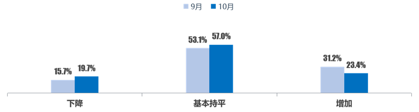 调查显示,10月二手车收购价格与销售价格环比趋于平稳,其中认为收购价格“下降”的二手车经理人比例为24.2%;认为销售价格上涨的二手车经理人比例为13.5%。