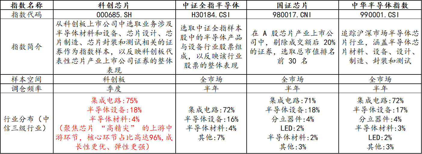 从调仓频率来看,科创芯片指数选取季度调仓,能更敏捷地反映芯片产业链发展趋势。