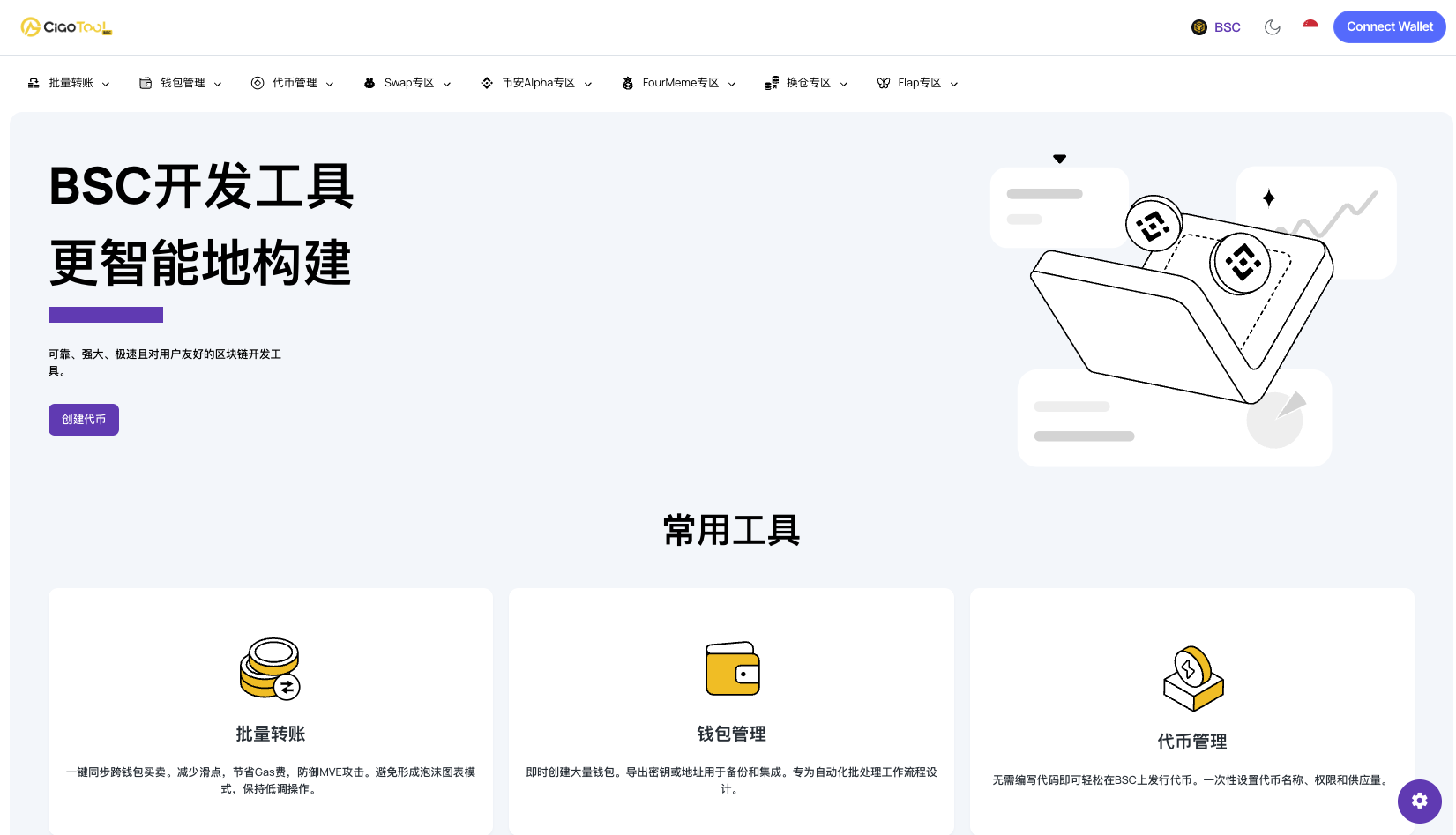 在 BSC 链上,CiaoTool 凭借其零代码发币、批量交易、冷换仓与市值管理等功能,成为最受欢迎的链上综合工具之一。