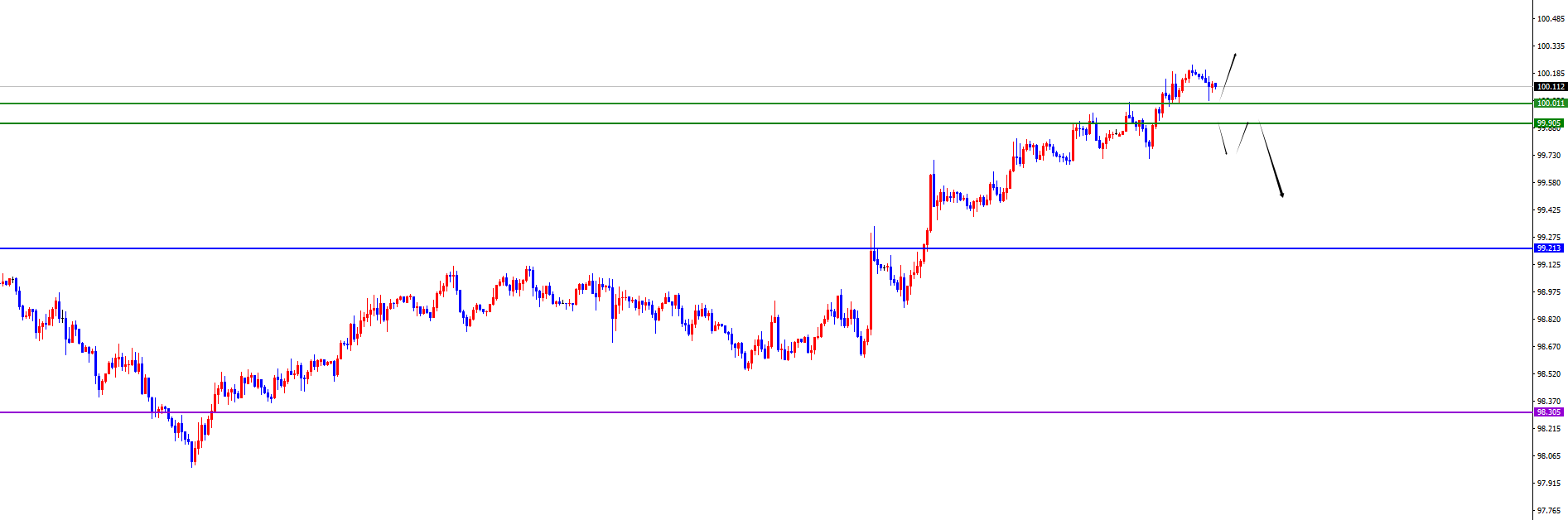 关键分水岭99.90-100区间,价格在此位置之上多对待