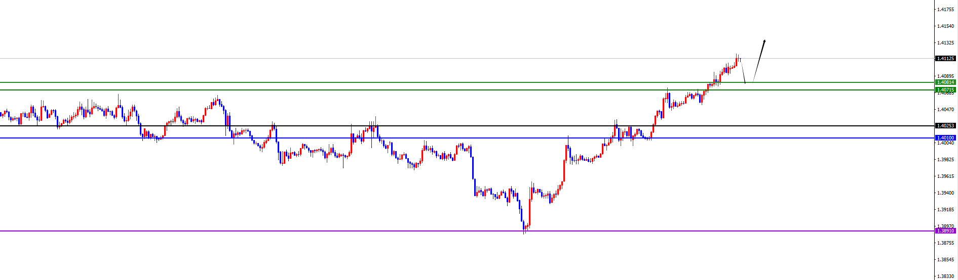 关键分水岭1.4070-1.4080区间,价格下破之前维持多对待