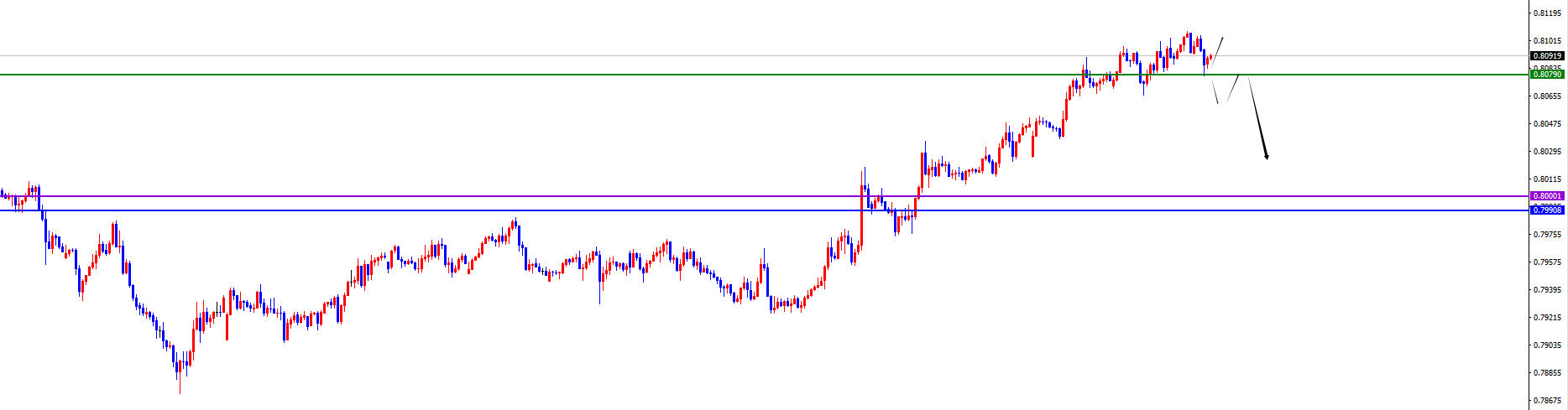 关键分水岭0.8080位置,价格下破之前维持多对待