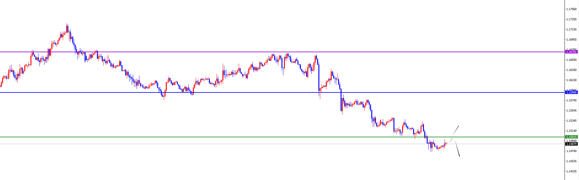 关键分水岭1.1500区域,价格上破之前维持空对待