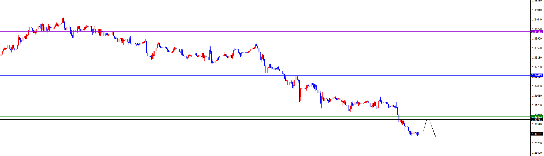 关键分水岭1.3070-80区间,价格上破之前维持空对待