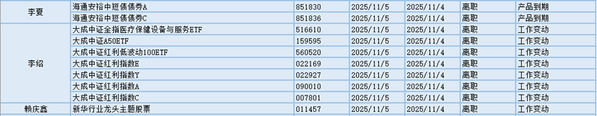 根据巨灵统计的数据显示,近30天(10.6-11.5)共有483只基金产品的基金经理发生离职变动。其中今天(11.5)有49只基金产品发布基金经理离职公告,从变动原因上来看,有9位基金经理是由于工作变动而从管理的23只基金产品中离职,有4位基金经理是由于产品到期而从管理的8只基金产品中离职。有1位基金经理是由于个人原因而从管理的18只基金产品中离职。