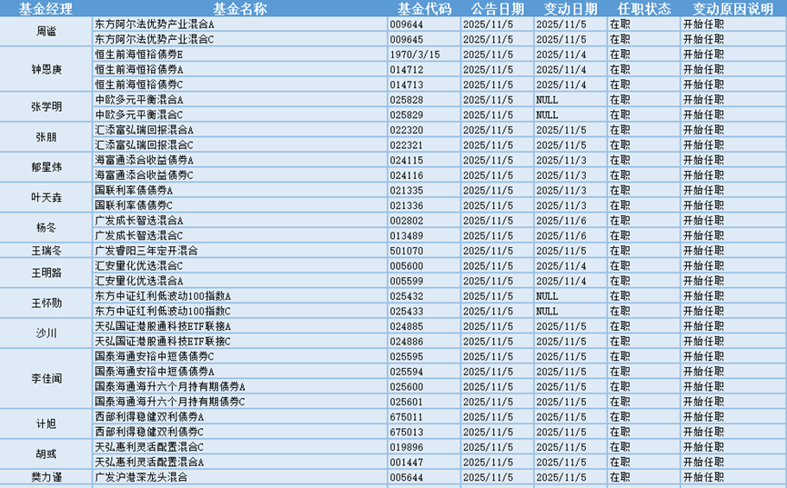 新基金经理上任方面,东方阿尔法基金周谧现任基金资产总规模为30.38亿元,管理过的基金多为混合型和股票型基金,任职期间回报最高的产品是金信量化精选混合A(002862),为混合型,在任职的3年又21天时间内获得112.21%的回报。新上任东方阿尔法优势产业混合A、东方阿尔法优势产业混合C这两只基金产品的基金经理。